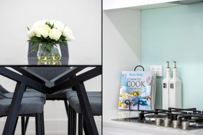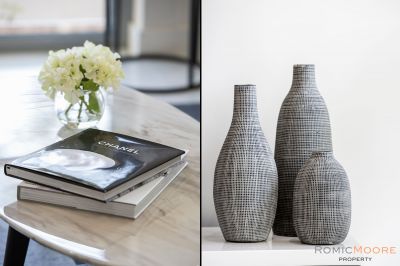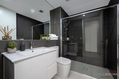 Quietly set back from the living areas are two generously proportioned bedrooms, both with built-ins, the main with an ensuite. Each of the luxury bathrooms are adorned in floor to ceiling tiles and offering duo showers.