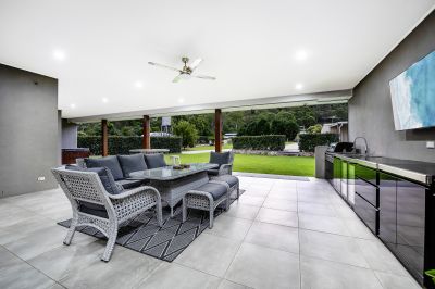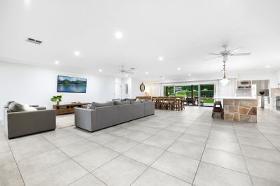 - Combined lounge and dining area leading to a covered outdoor entertainment space