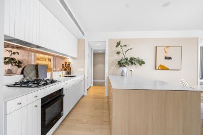 - Impressive entertainer's kitchen featuring an island bench, ample storage, integrated fridge + dishwasher